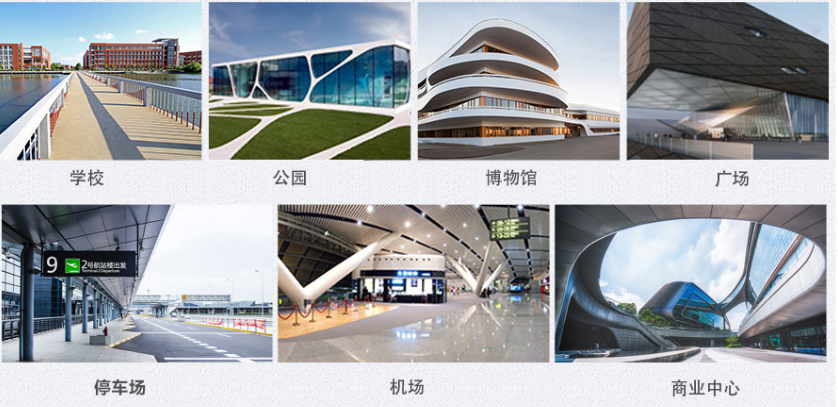 學校、公園、博物館、廣場、停車場、機場、商業(yè)中心